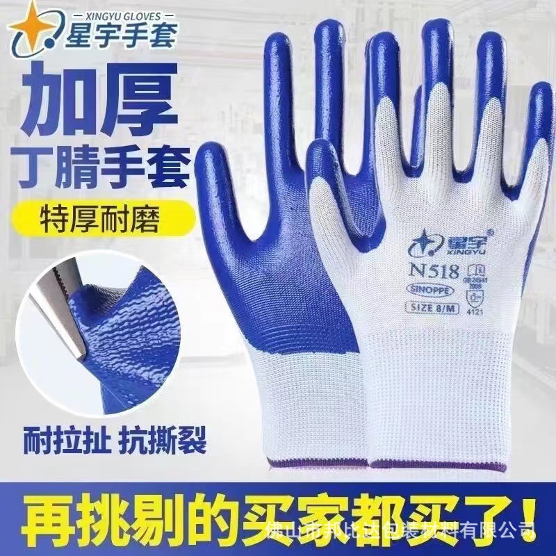 正品星宇少なくとも18労働保護手袋耐摩耗性作業滑り止めニトリルゴム皮コーティング工事現場作業手袋