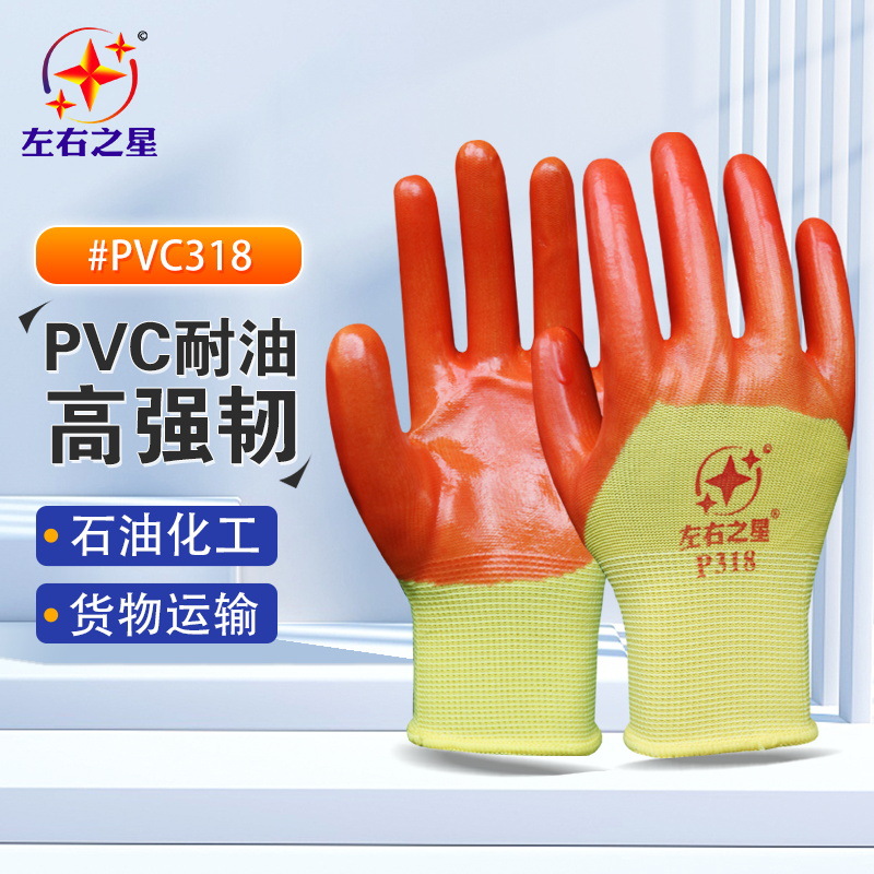 左右の星PVC半掛ゴム手袋防油滑り止め耐摩耗快適通気異臭なし工事現場の自動車修理用