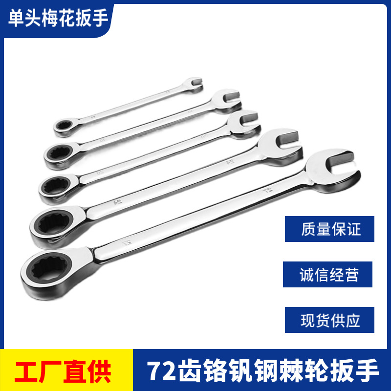 卸売り両用梅開口ラチェットレンチクロムバナジウム鋼多機能快速鏡面レンチ双頭レンチ工具
