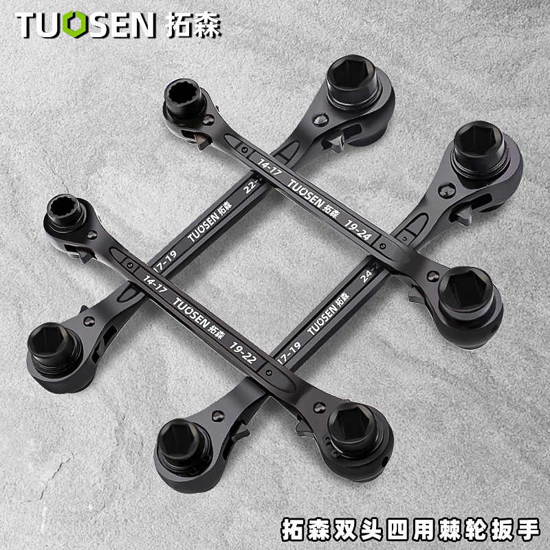 拓森金属工具架子工快速レンチ多機能ダブルヘッド四用六角スリーブラチェットレンチ