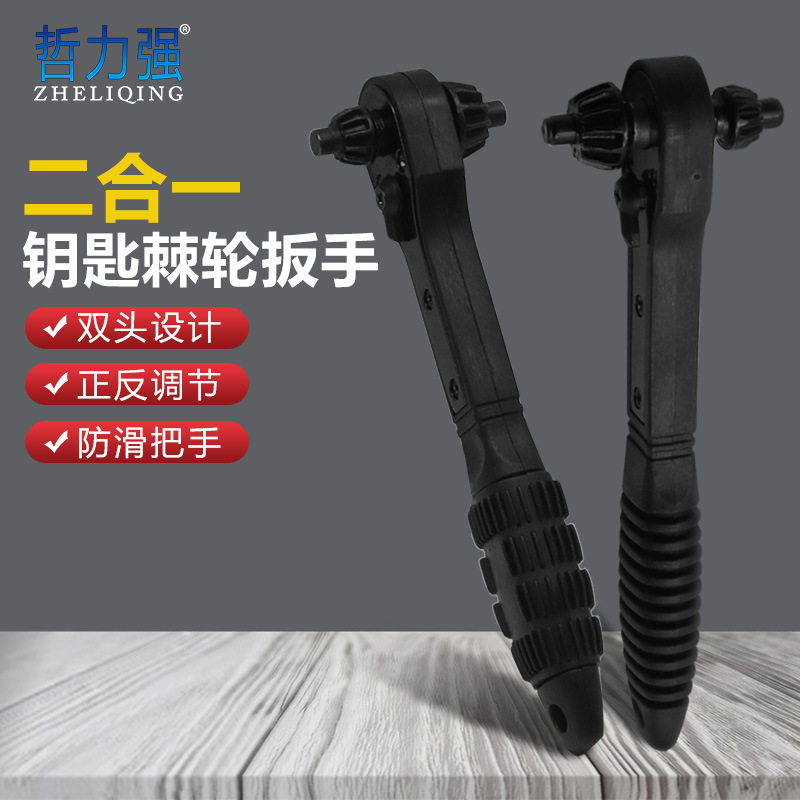 新型二合一ドリルチャックキーレンチ黒快速ラチェットレンチ二頭二重用レンチが硬い