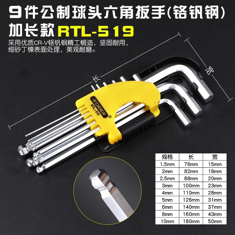ボールヘッド、梅花、平頭六角レンチセット、延長中長ネジレンチ ZJ136-L-RQ