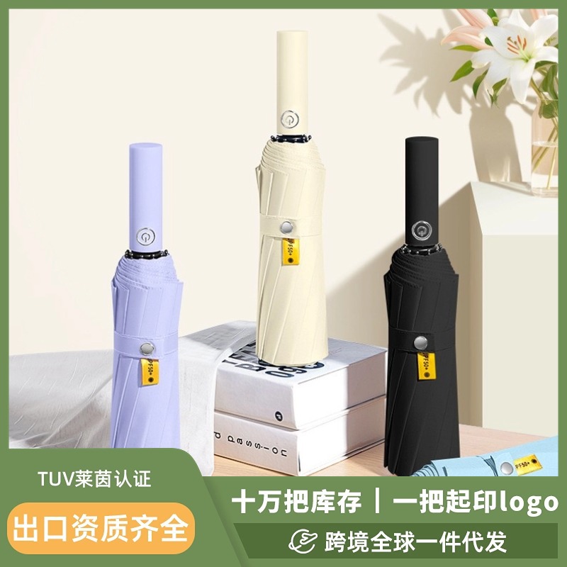 カスタム晴雨両用折り畳み自動傘大サイズ日焼け止め傘卸売り日よけ抗嵐高級感手動傘