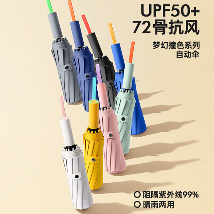72本骨のコントラストカラーの自動傘、ビニール日焼け止め傘、男性と女性用、晴雨兼用、70% off 層広告ロゴ