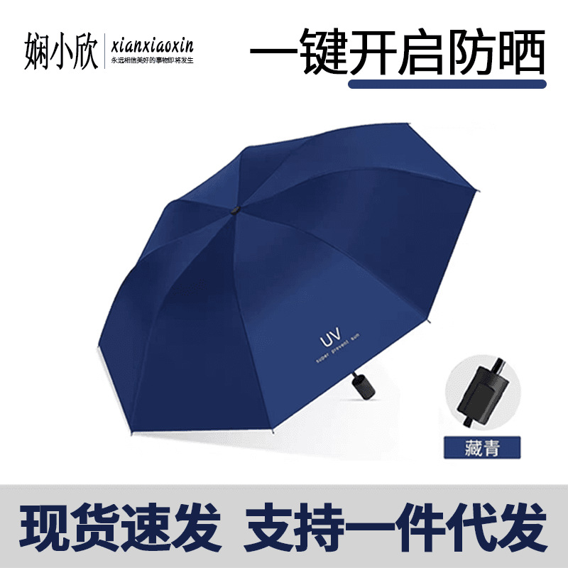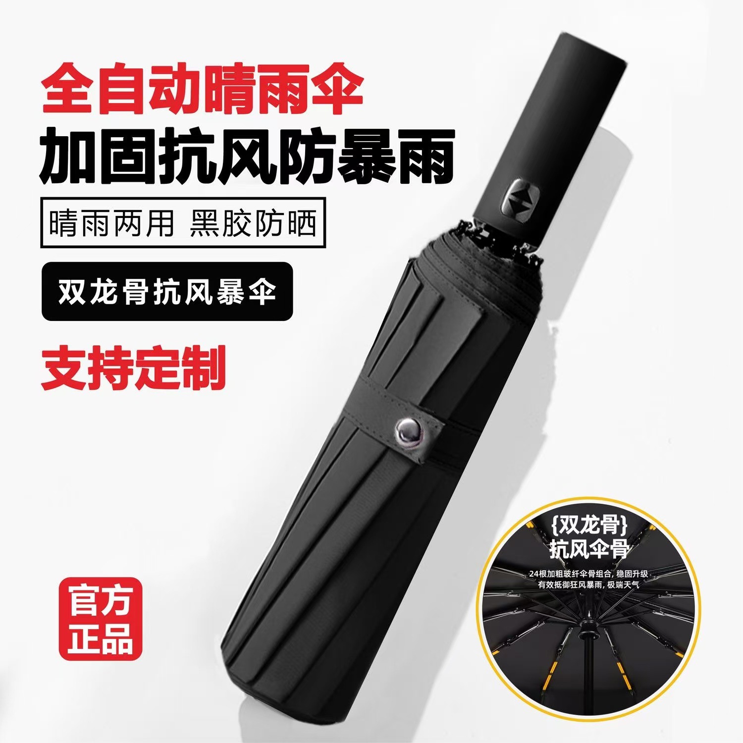 全自動24骨UV黒ゴム傘補強増加晴雨両用傘三つ折り傘日除け傘広告傘カスタマイズ