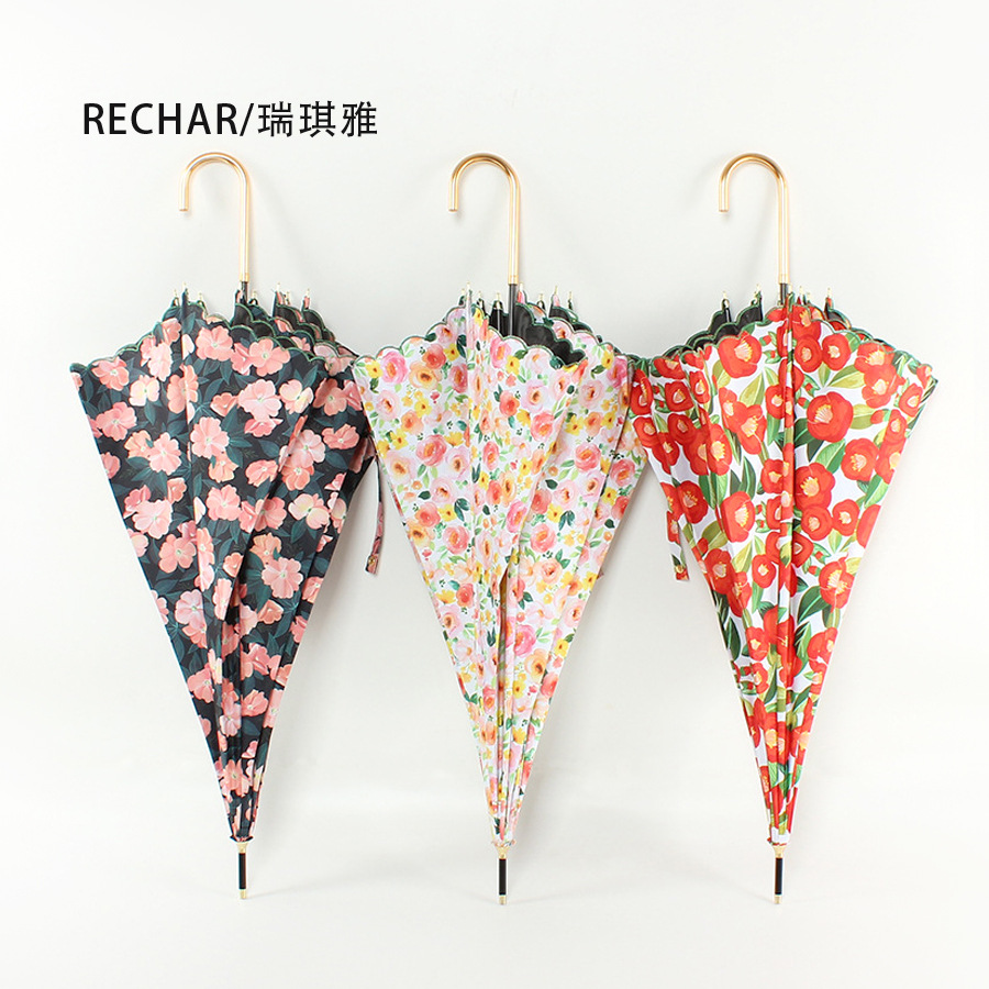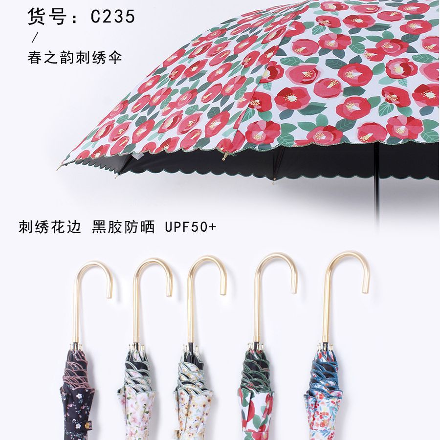 現物c235黒ゴム春の韻刺繍長傘韓国花デジタル砕花小清新日除け傘晴雨