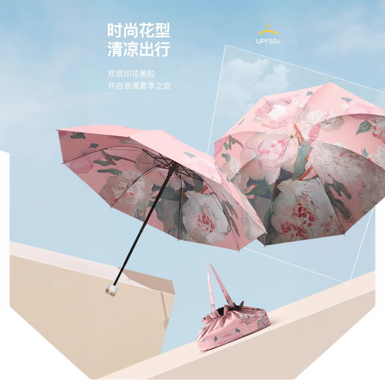 Gd同モデル全自動デイジー黒ゴム折り畳み日焼け止め紫外線防止傘日傘印刷広告