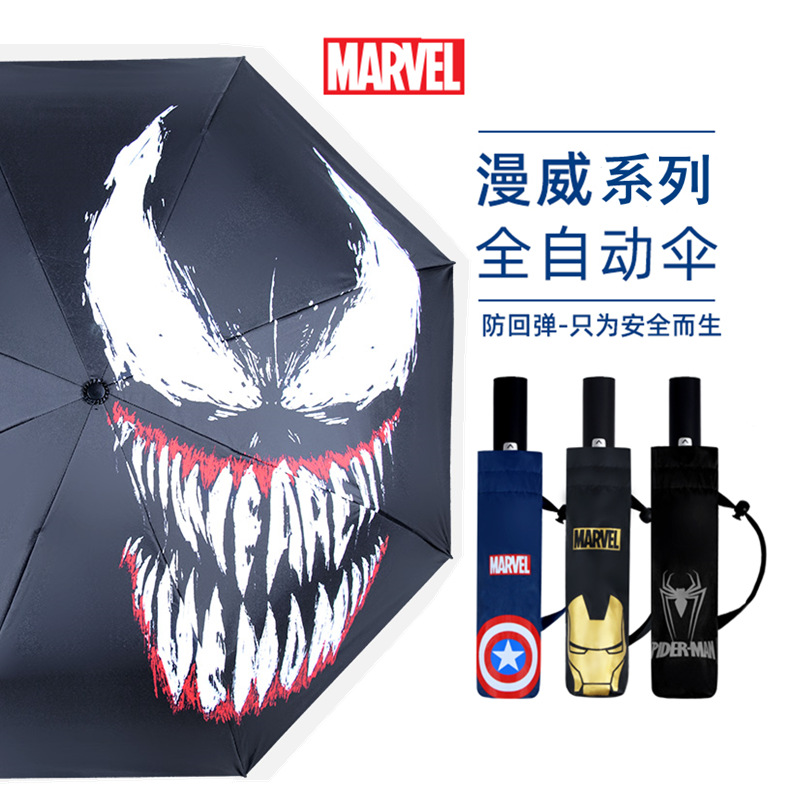 漫威全自動傘男子かっこいい黒ゴム日除け傘小中学生スパイダーマン全自動三つ折り傘毒