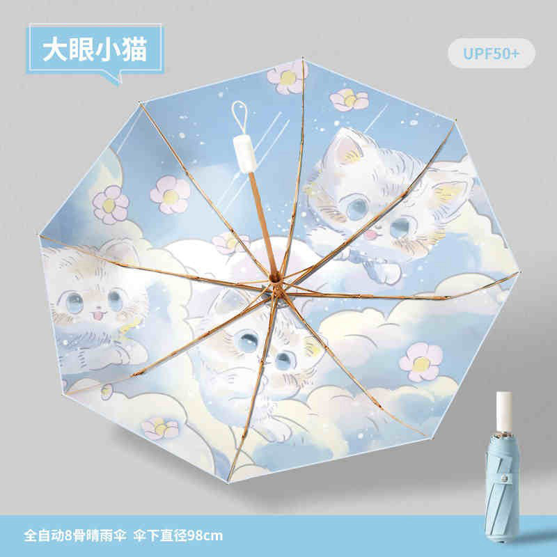 Olcyat欧力猫創意自動傘小型携帯型黒ゴム紫外線防止日傘晴れ傘日傘日傘傘