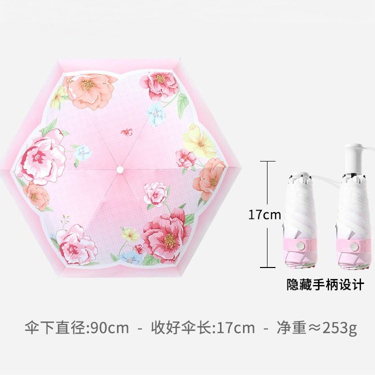 六折平ミニポケット日傘日焼け止め紫外線防止傘女晴雨両用日傘小型携帯