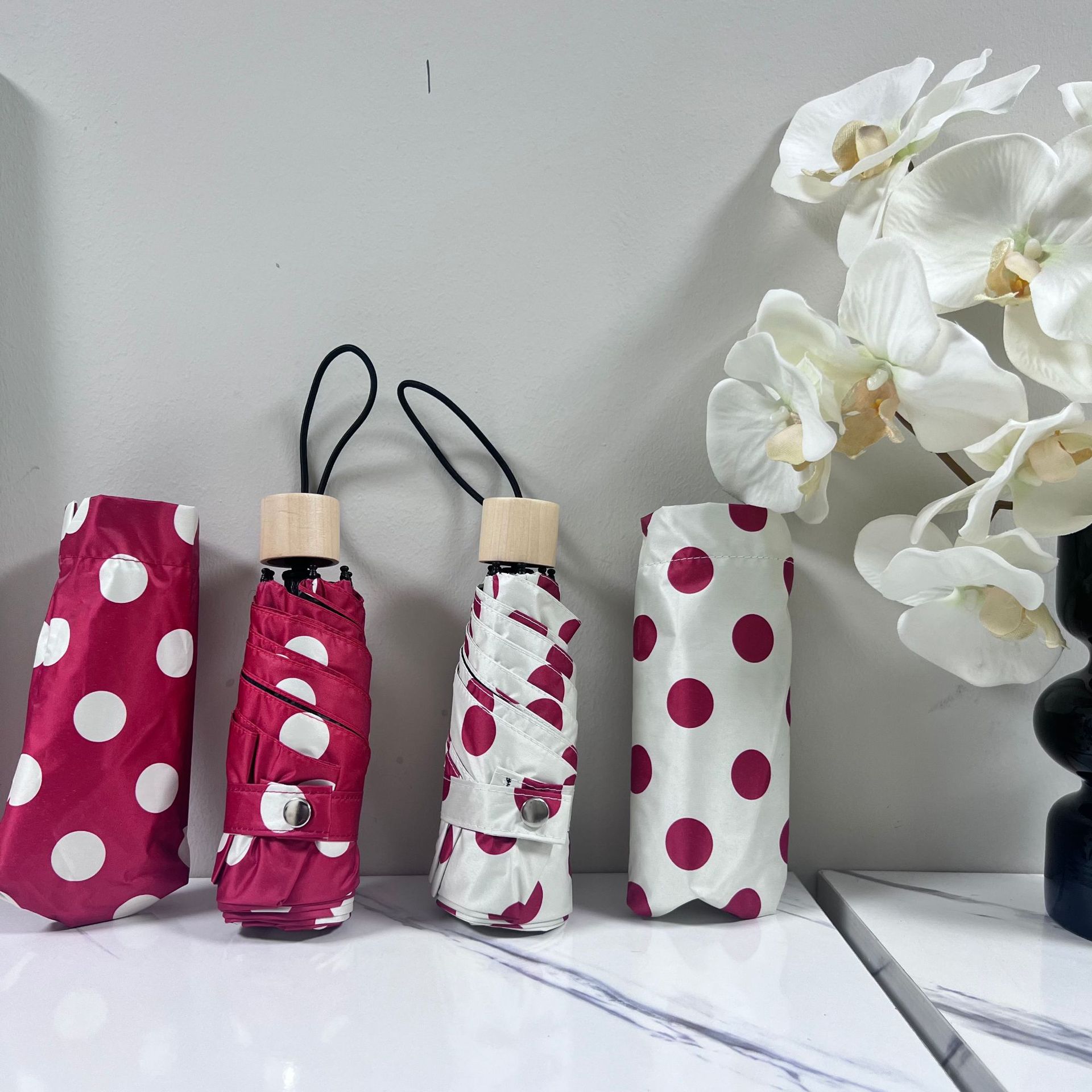 レトロ大紅波点五折傘手動晴傘小型携帯日焼け止め日除け日傘三折学生傘