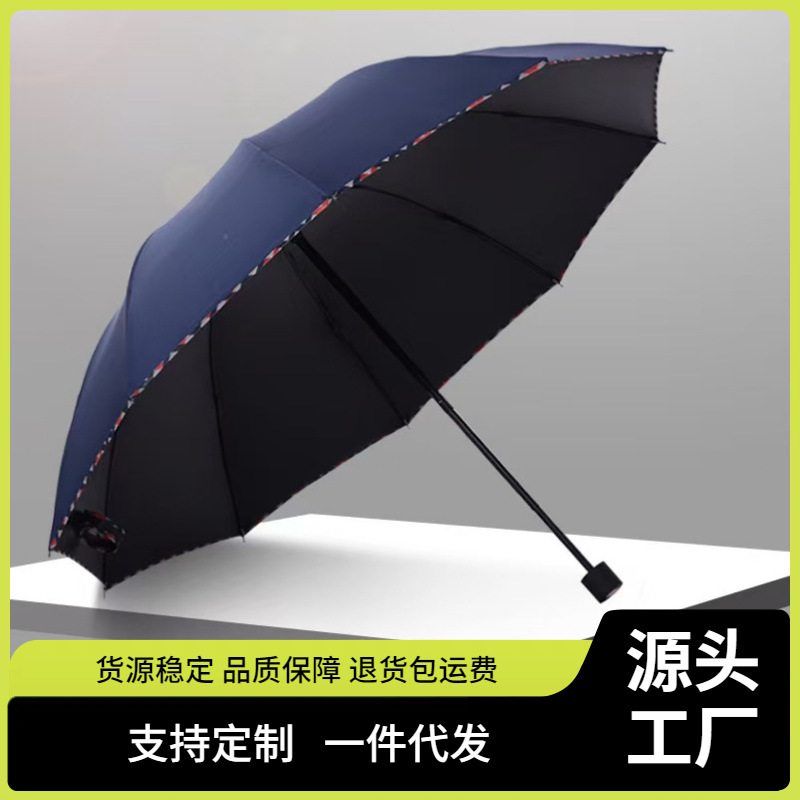 10骨黒ゴム傘折り畳み防止二人用男性用大型傘印字ロゴ傘ビジネス防雨防止