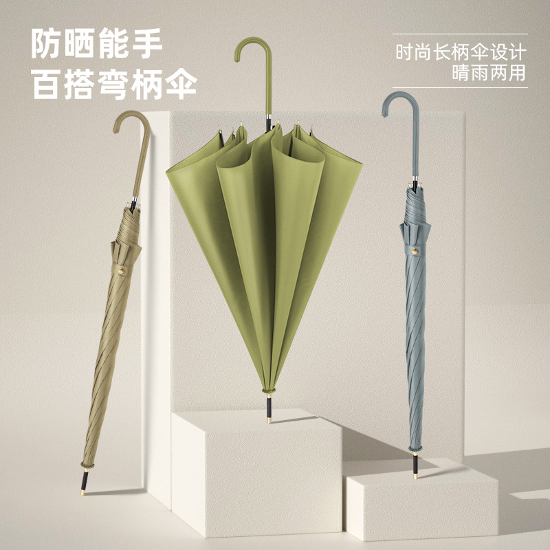 8本骨の小さな新鮮なストレート傘、女性用の長いハンドルの自動傘、さらに厚く、日本製の耐風性と耐暴風性の晴雨兼用傘