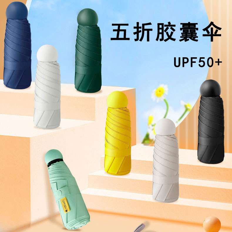 跨境迷你五折胶囊伞便携小巧太阳伞晴雨两用防晒防紫外线遮阳伞