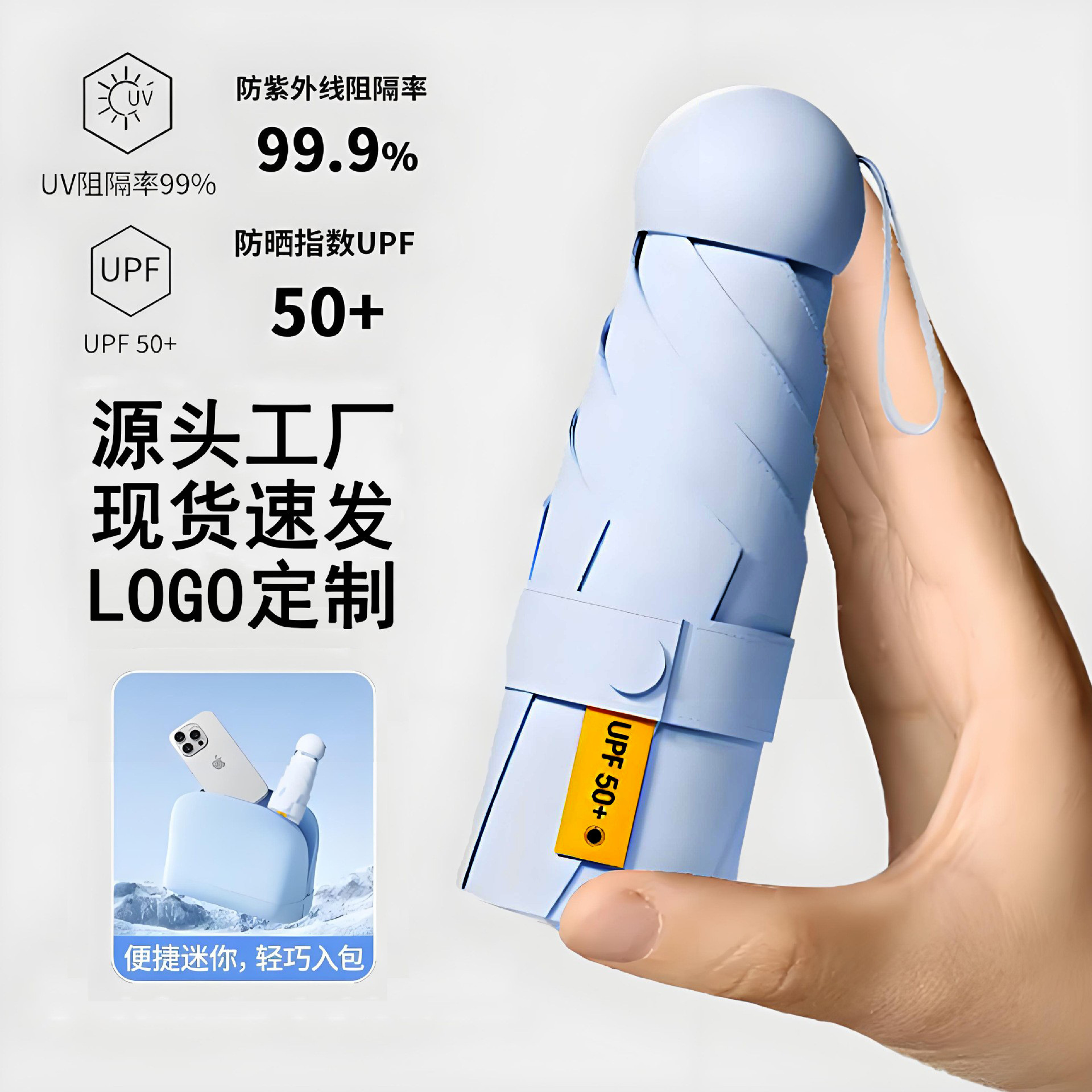 五つ折りカプセル日伞ポータブル日焼け止めuv保护パラソル女性晴雨両用ポケット伞広告ロゴ