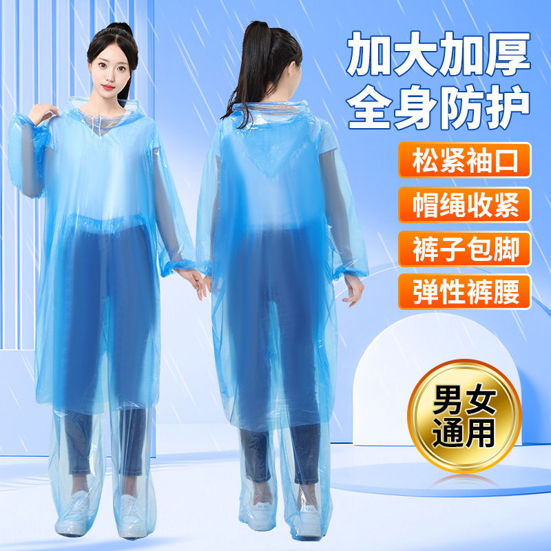 使い捨てレインコート真空圧縮カード包装屋外携帯全身防水成人厚さ平均レインコート