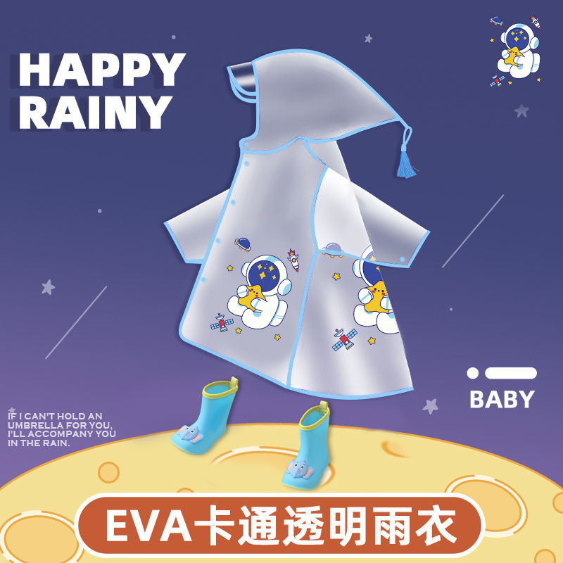子供用レインコート、小学生全身防水マント、幼稚園ベビー漫画透明防雨服、雨具セット