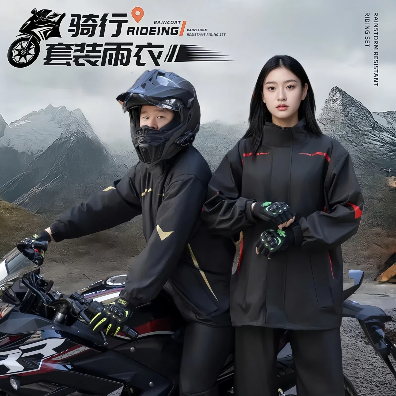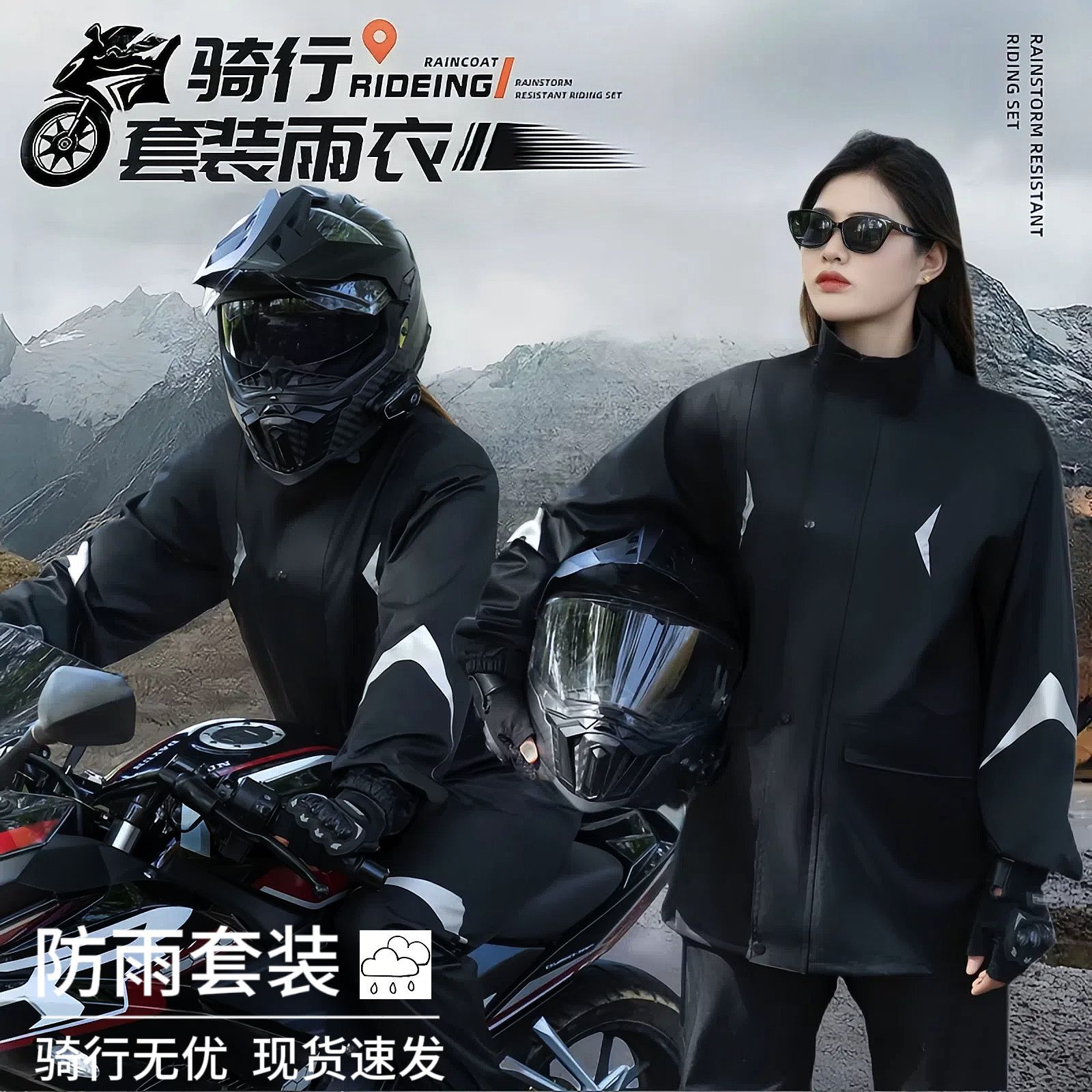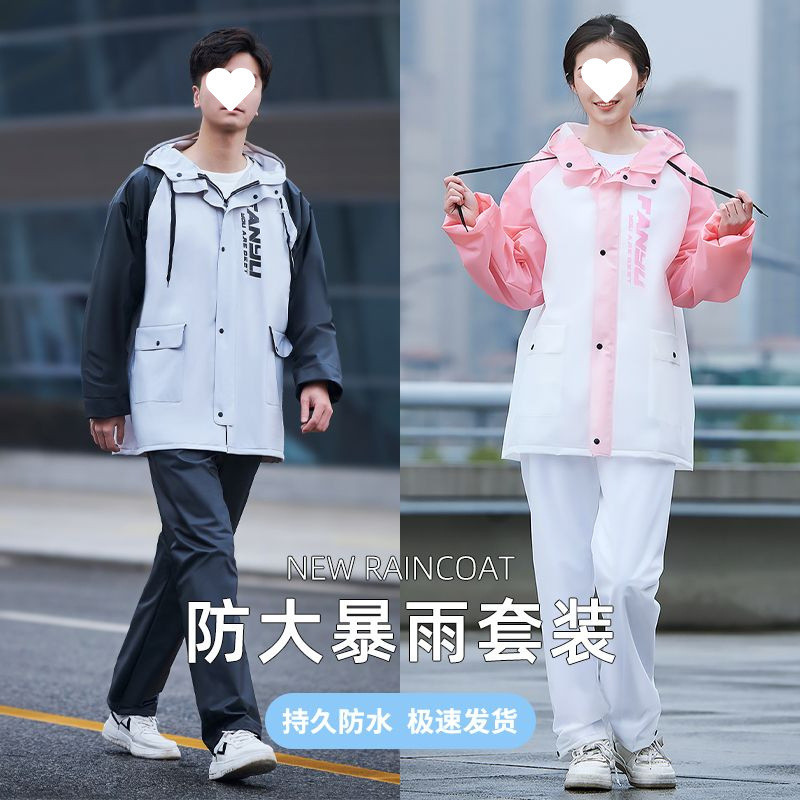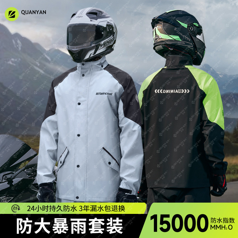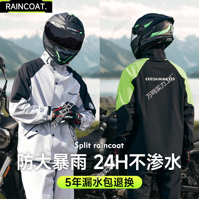 レインコートスーツ、サイクリング防雨分割全身オートバイ厚みのある電気自動車テイクアウトレインコートとレインパンツ二重層