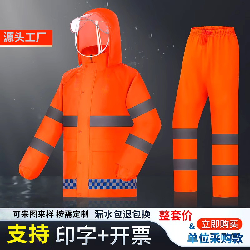 卸売大人の勤務反射スプリットレインコート屋外サイクリング洪水防止レインコートとレインパンツスーツ全身防水服