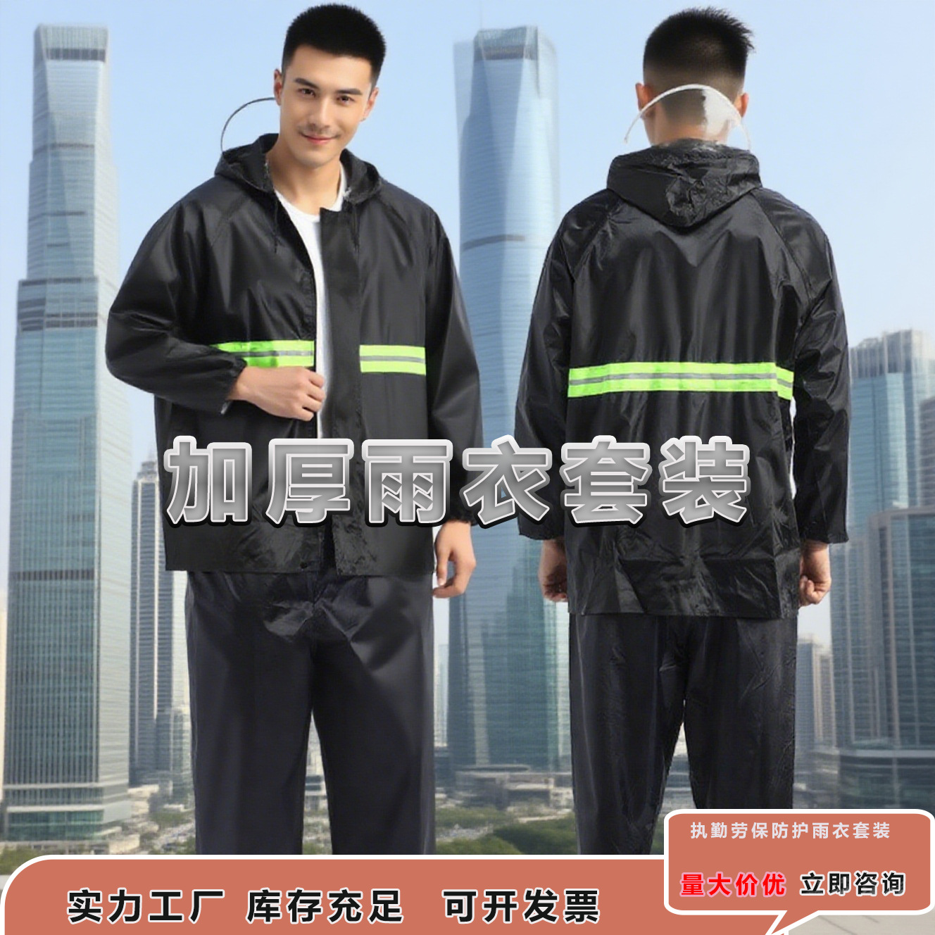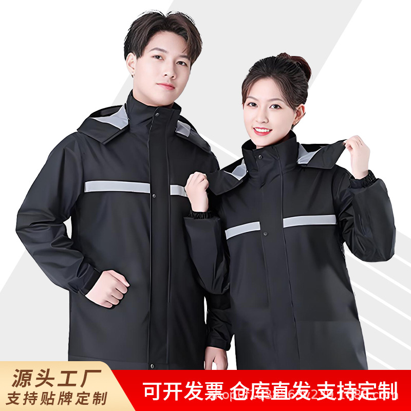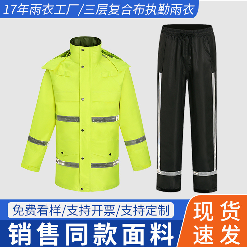 メーカー卸売三層複合布反射勤務レインコート交通道路勤務分割レインコートとレインパンツセット