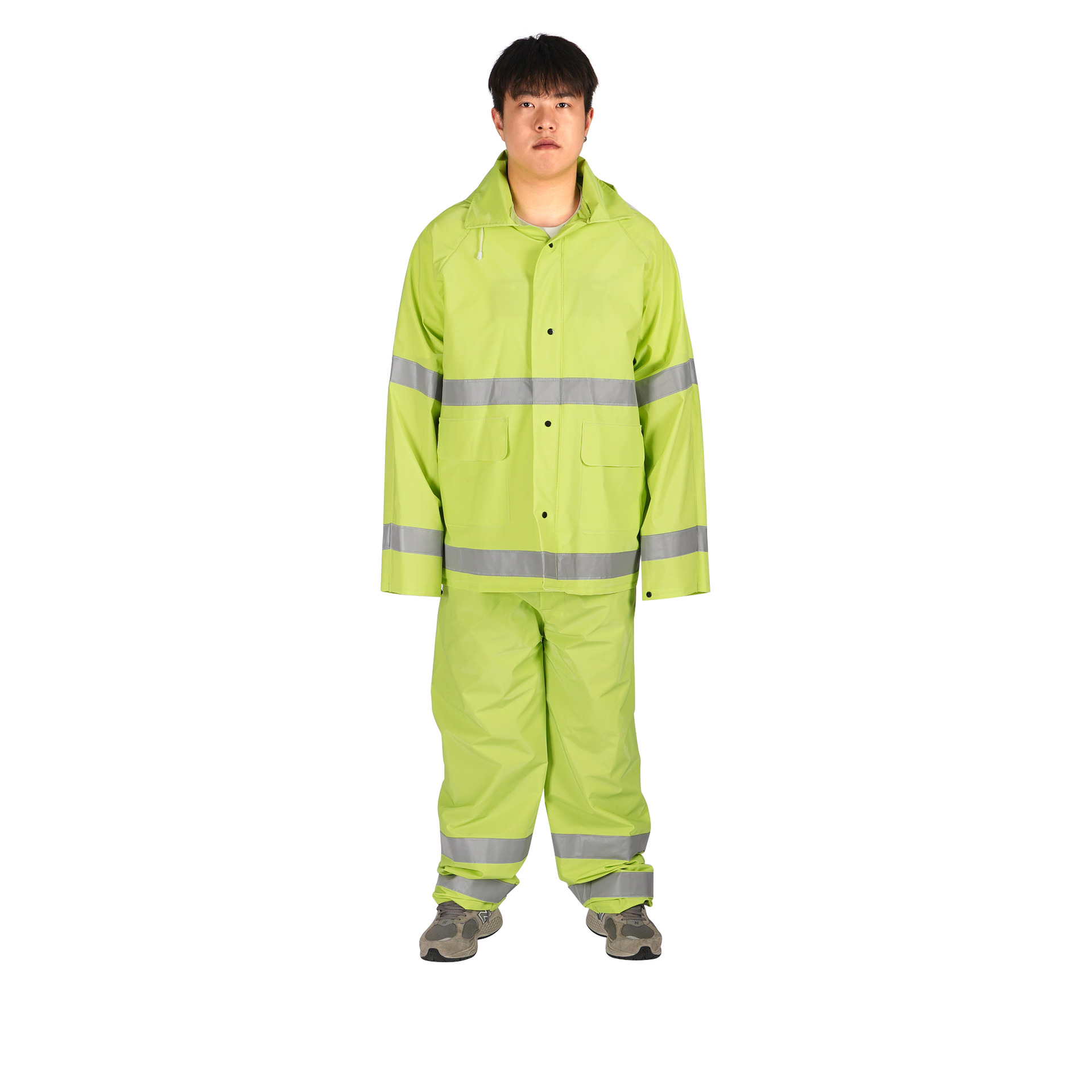 ソースファクトリー交通勤務レインコートとレインパンツセット屋外反射蛍光グリーン二層防雨労働保護レインコート