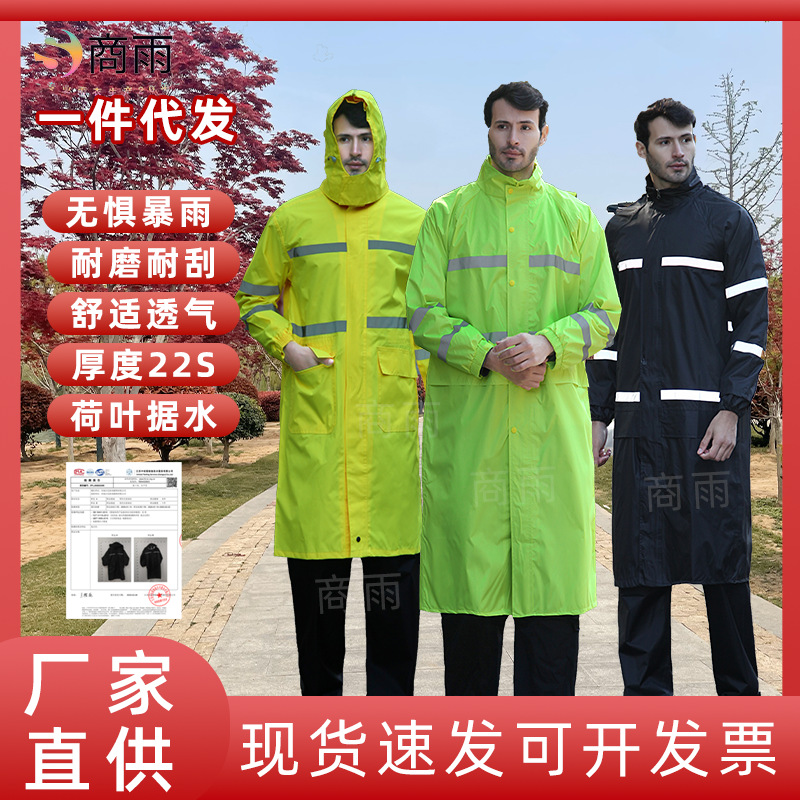 反射レインコート成人長型トレンチコート工事現場労働保護分体レインコート防爆雨黒色オックスフォード布連体レインコート