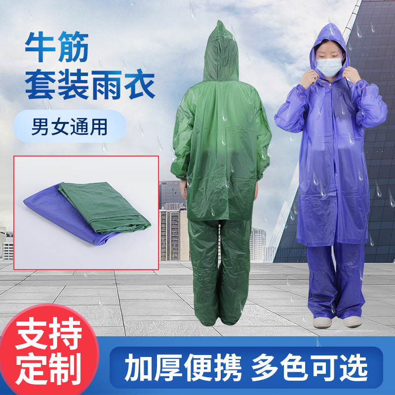 牛筋スーツレインコートを長くして、長いレインコートを厚くします。