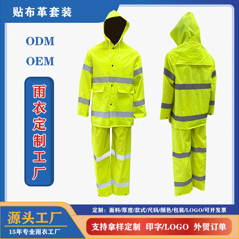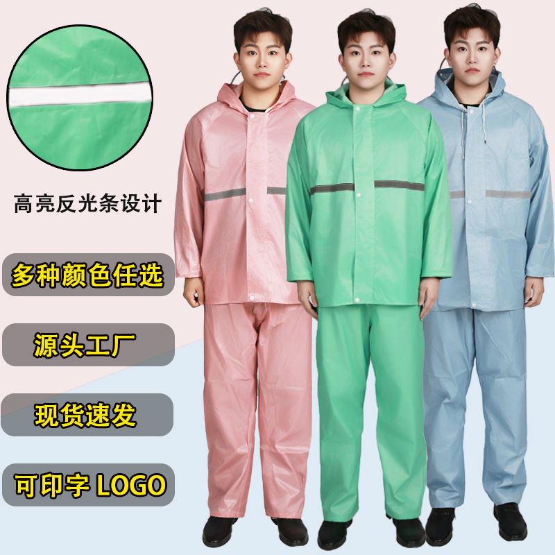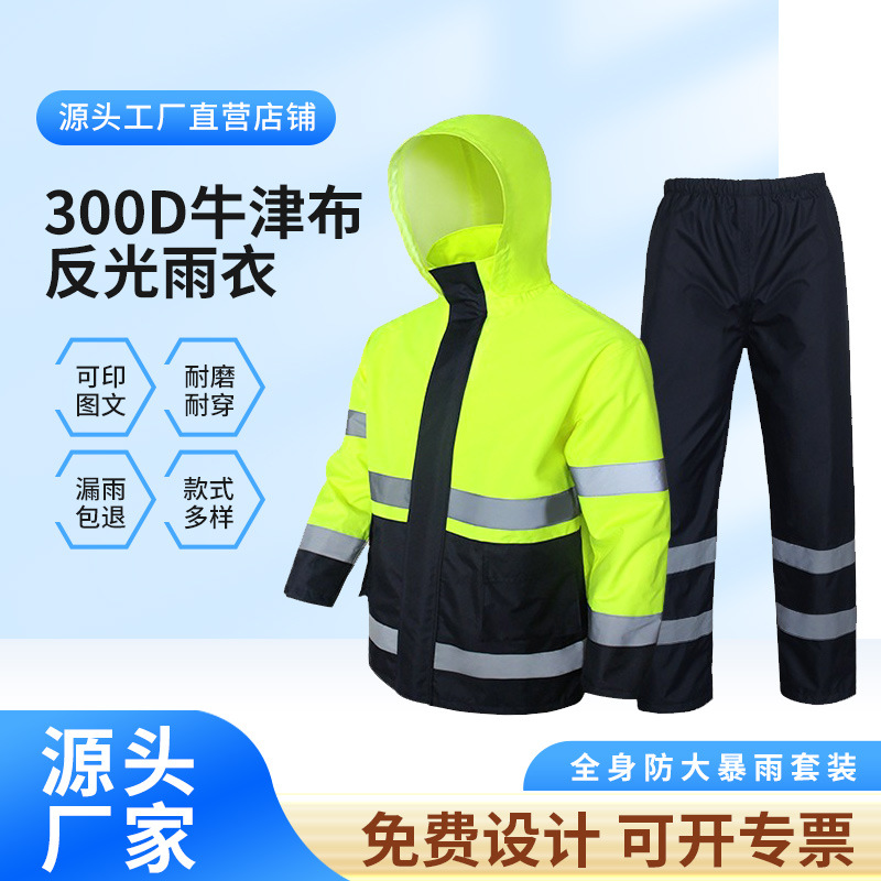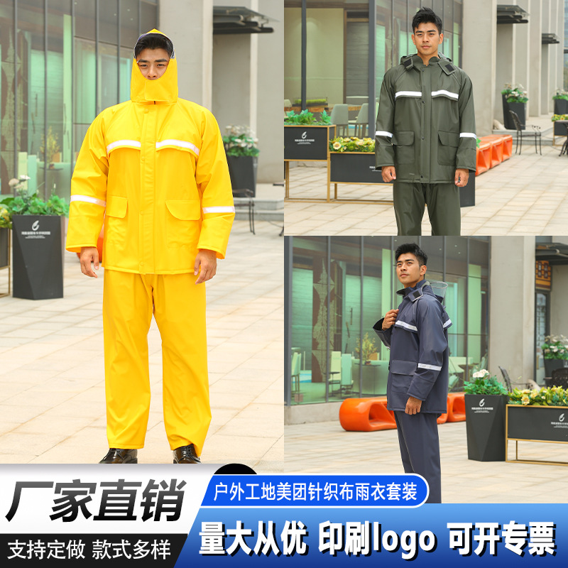 メーカー厚手反射レインコートレインパンツ成人分体セット防豪雨男性女性工事現場農業用広告レインコート