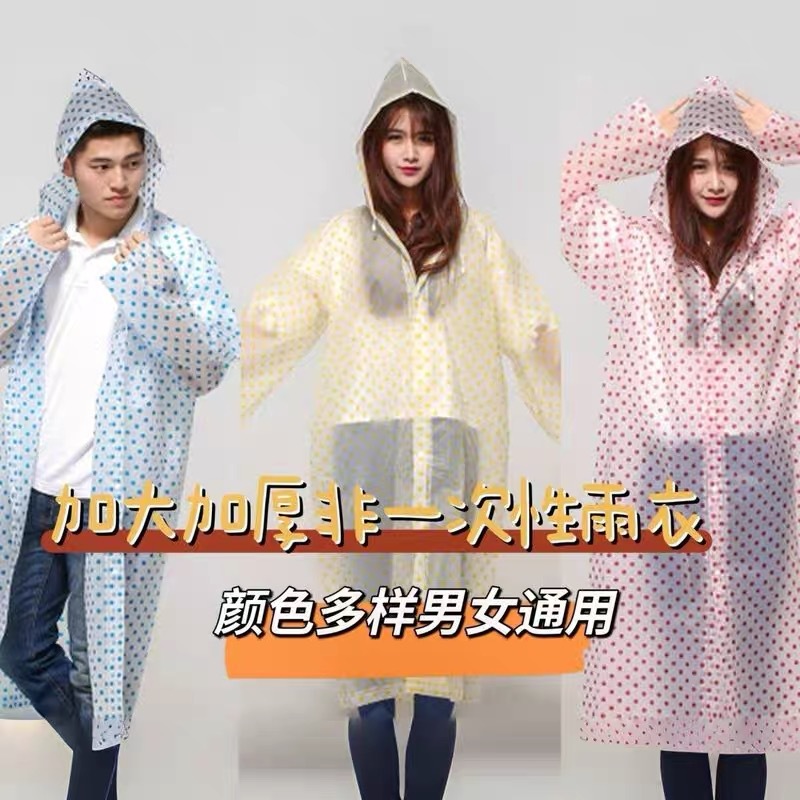 厚みのある水玉模様のレインコート、旅行に便利なレインコート、個別包装された非使い捨てEVAドットレインコート卸売
