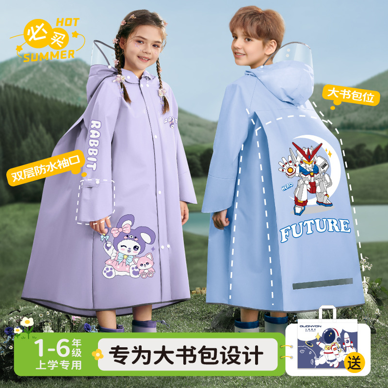牧萌子供レインコート男の子女の子全身防豪雨小学生かばん付き位通学専用学生レインコート