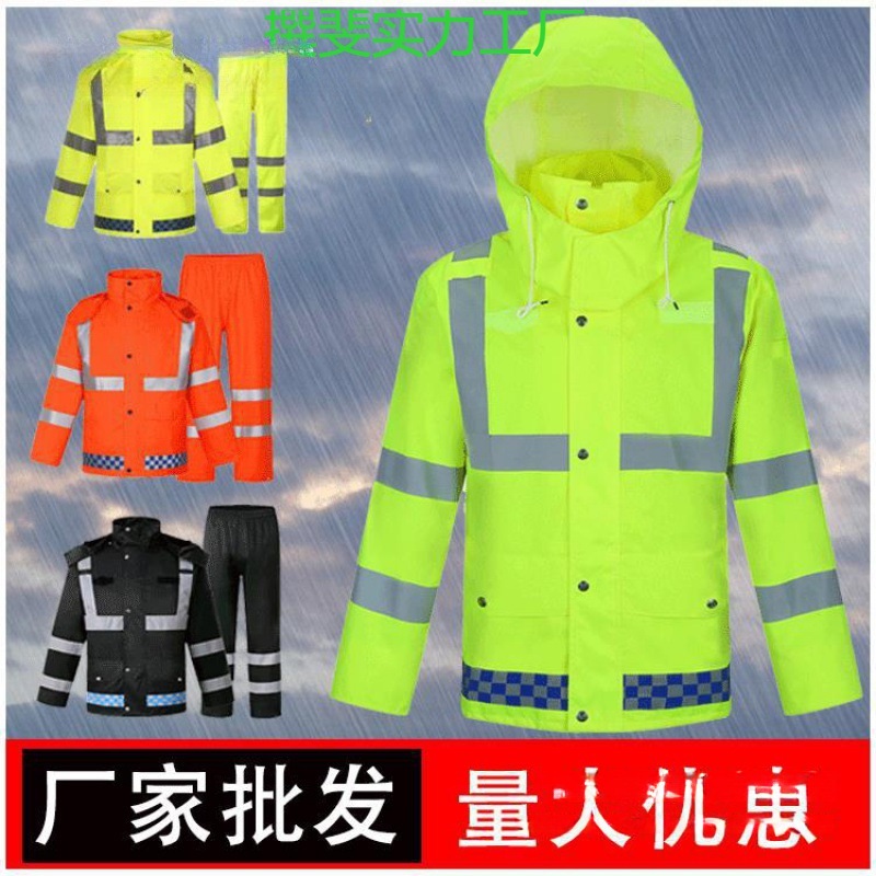 交通勤務レインコートレインパンツセット蛍光緑屋外成人環衛反射分離式レインコート緊急洪水防止