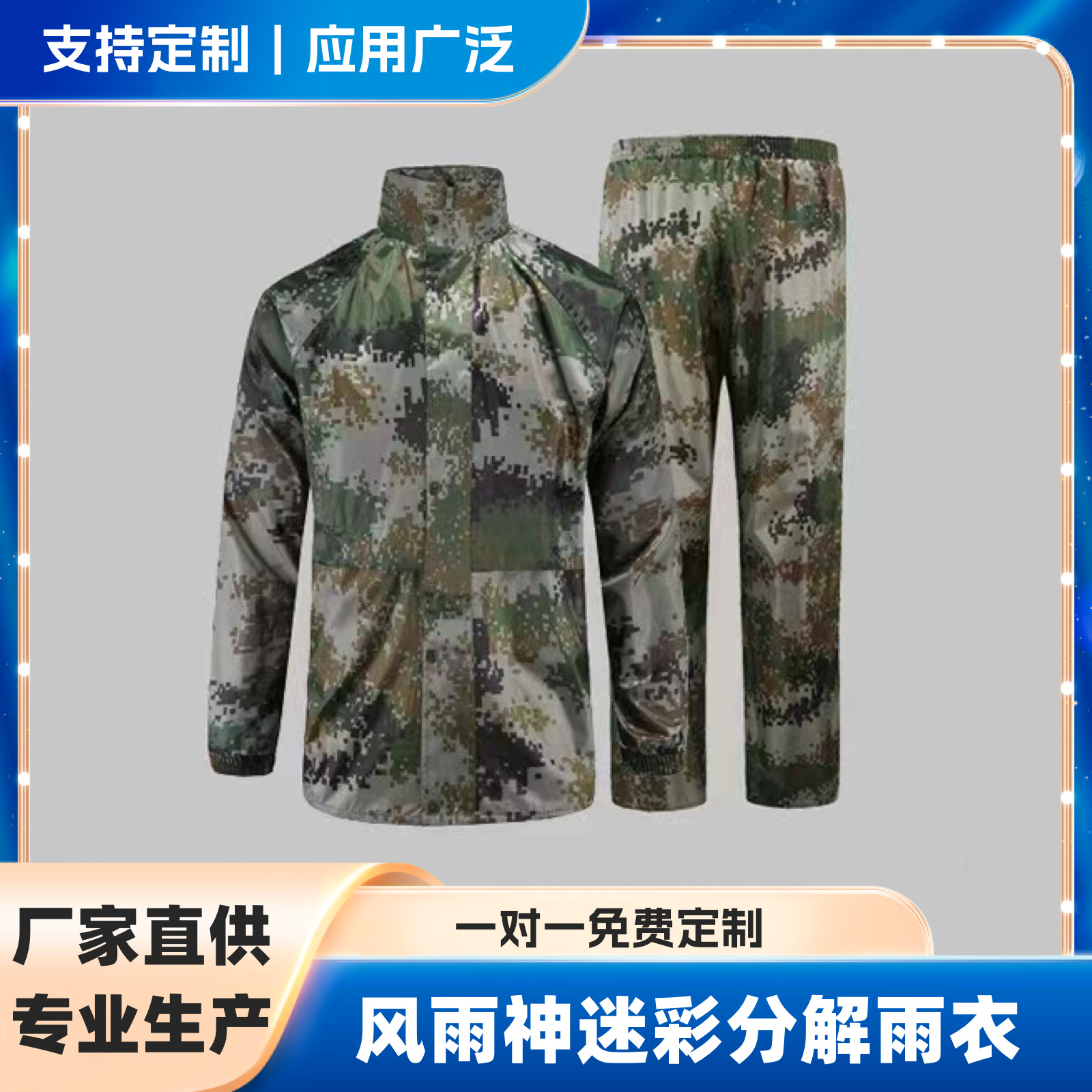 分割式迷彩レインコートとレインパンツのセット、テイクアウト、アウトドア、ハイキング、釣り、電動自転車、労働保護、ウインドブレーカー風、分割式