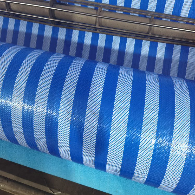 80g単膜タイ卸売りプラスチックpp青白格巻布テント布防水防雨青白条カラー布