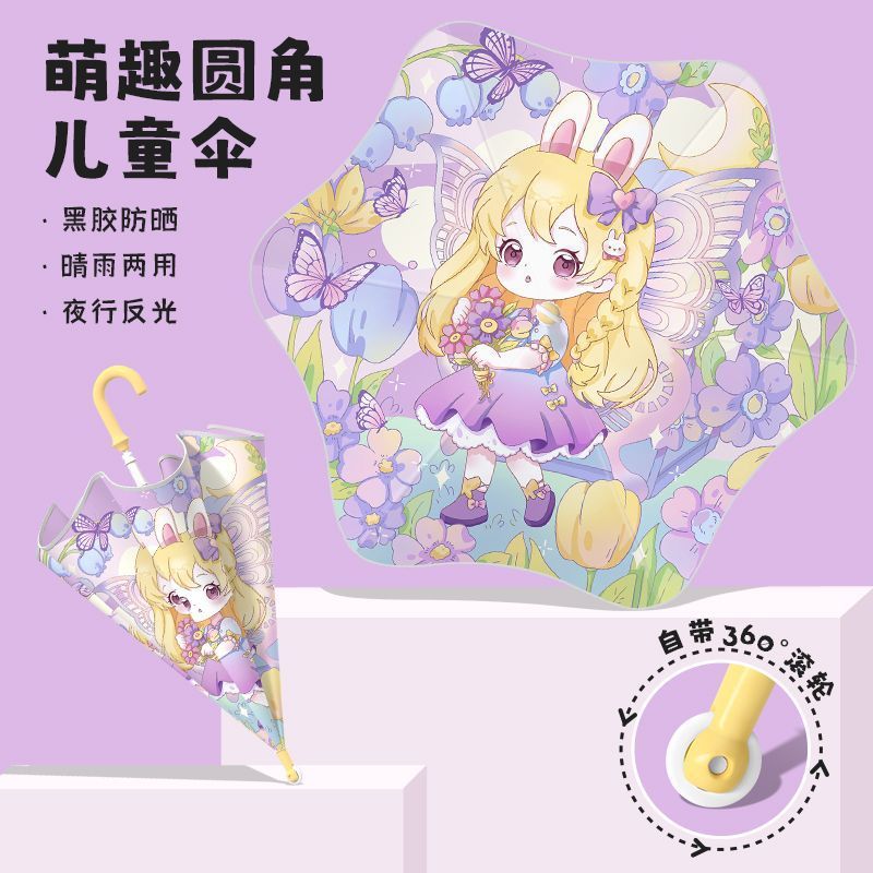 美少女の丸い角の刺し傷防止子供用傘、男の子と女の子向けのストレート傘、楽しいローラーデザインの傘