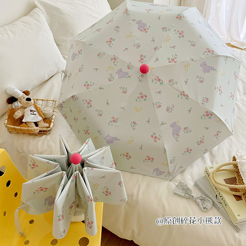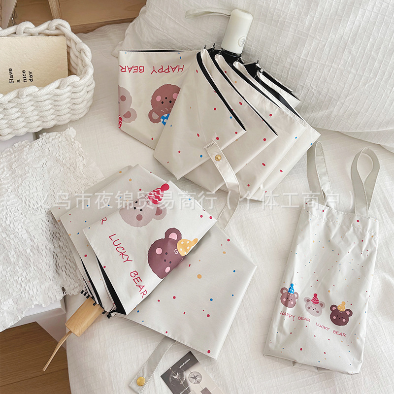 新品美ラード系彩豆熊三折黒ゴム日焼け止め晴雨両用折りたたみ傘