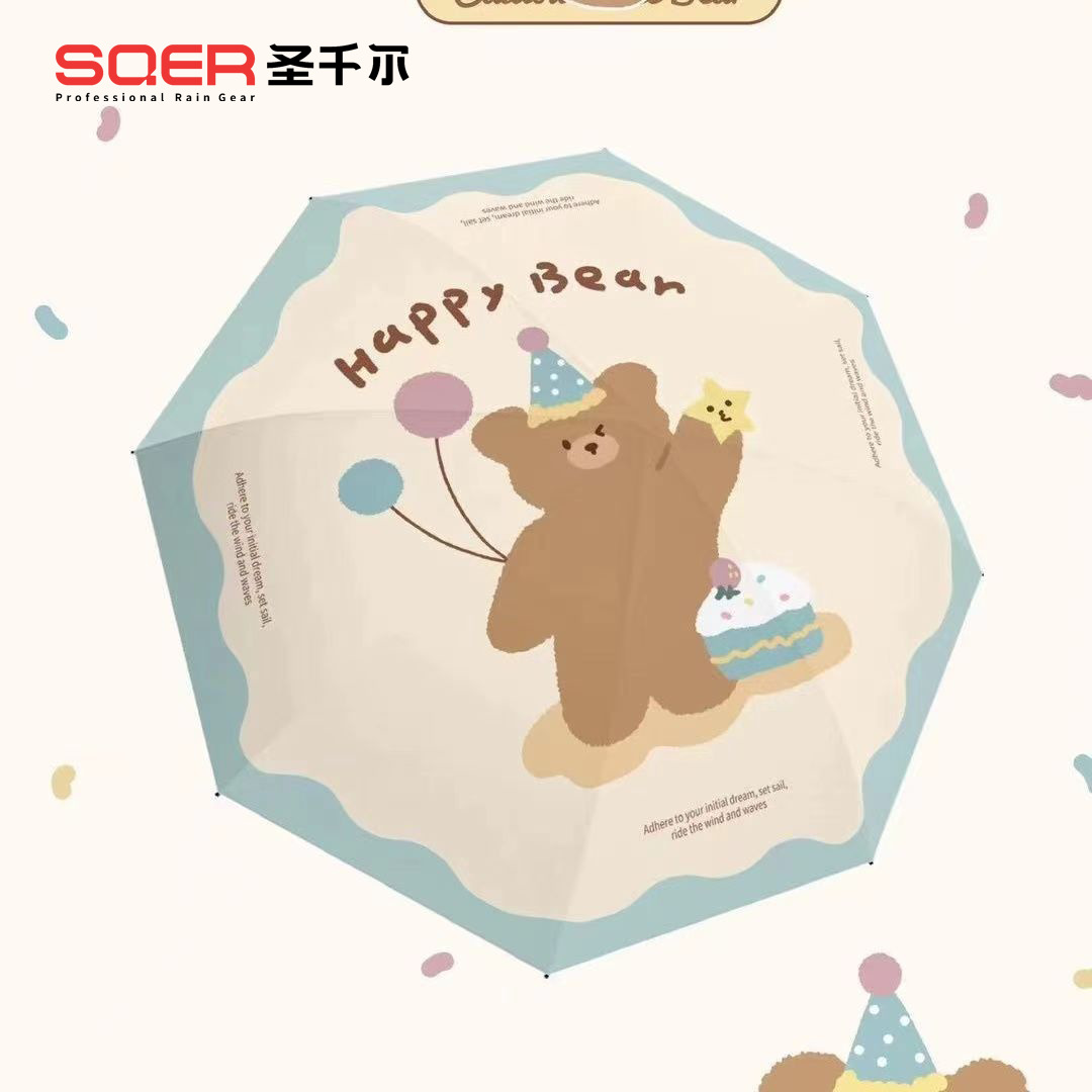 メーカー卸売り創意三折手動傘漫画黒ゴム日焼け止め折り畳み熊日よけ晴れ傘カスタマイズ可能