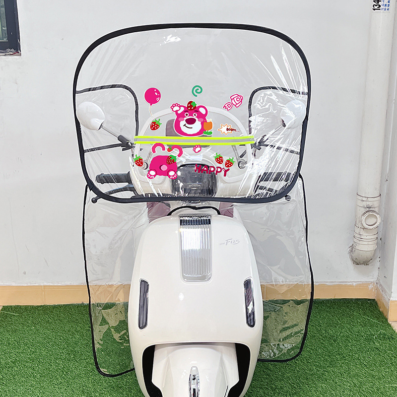 電気自動車フロントガラス取り外し可能かわいい漫画イチゴクマバッテリー車オートバイ冬防風防寒カバー