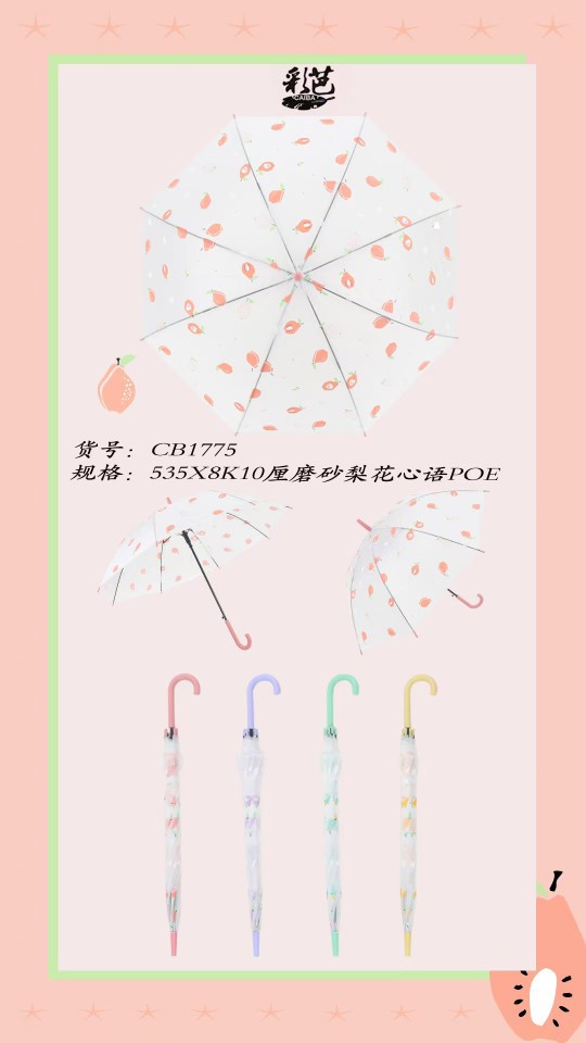 フロスト透明ストレート傘学院風漫画熊熊小熊小花街拍傘長柄傘広告傘