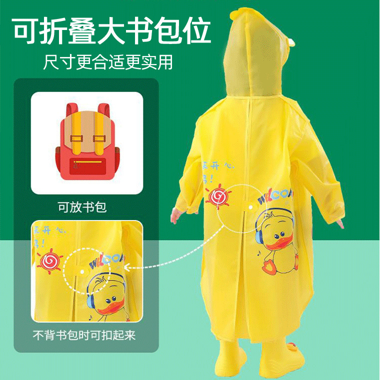 B.duck小黄鴨児童レインコート幼稚園の小学生はレインコートを厚くして学校に通う全身の男の子と女の子の赤ちゃん