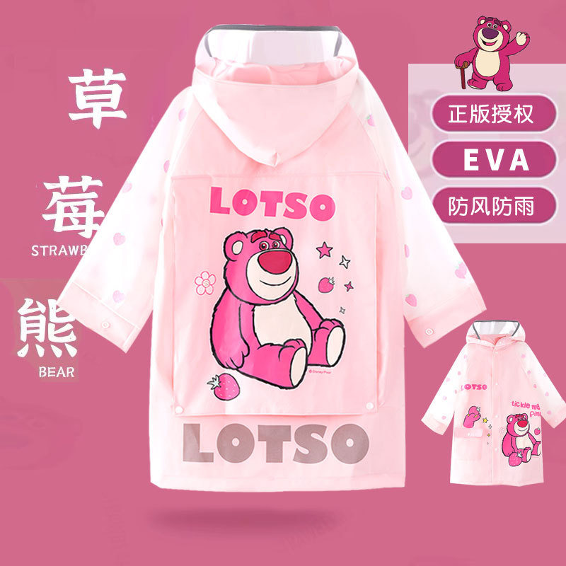 ディズニー子供用レインコート女の子大きなつばイチゴクマランドセル付きポンチョ学生通学防水服全身