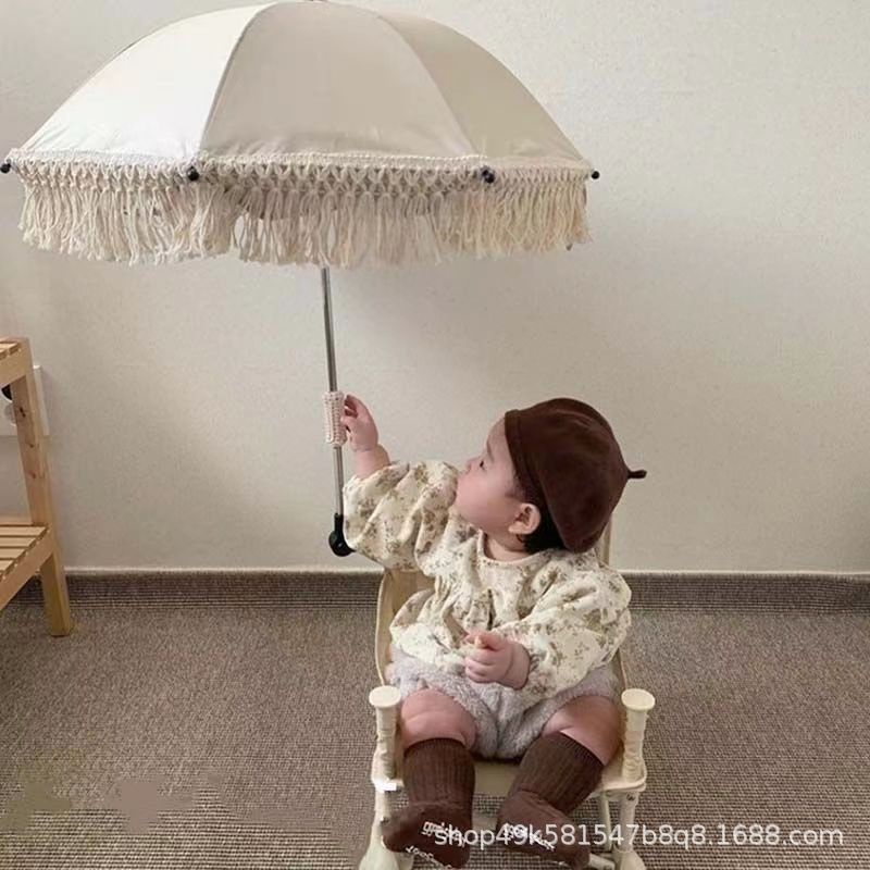 Ins韓国赤ちゃんシート日除け傘休暇カート日焼け止め傘熊刺繍屋外タッセル傘夏