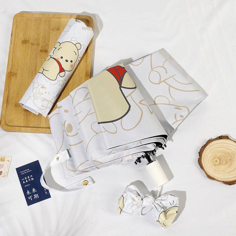 代理メーカー直売現物三つ折り黒ゴム防学生晴傘女可愛いウィニーベアー傘