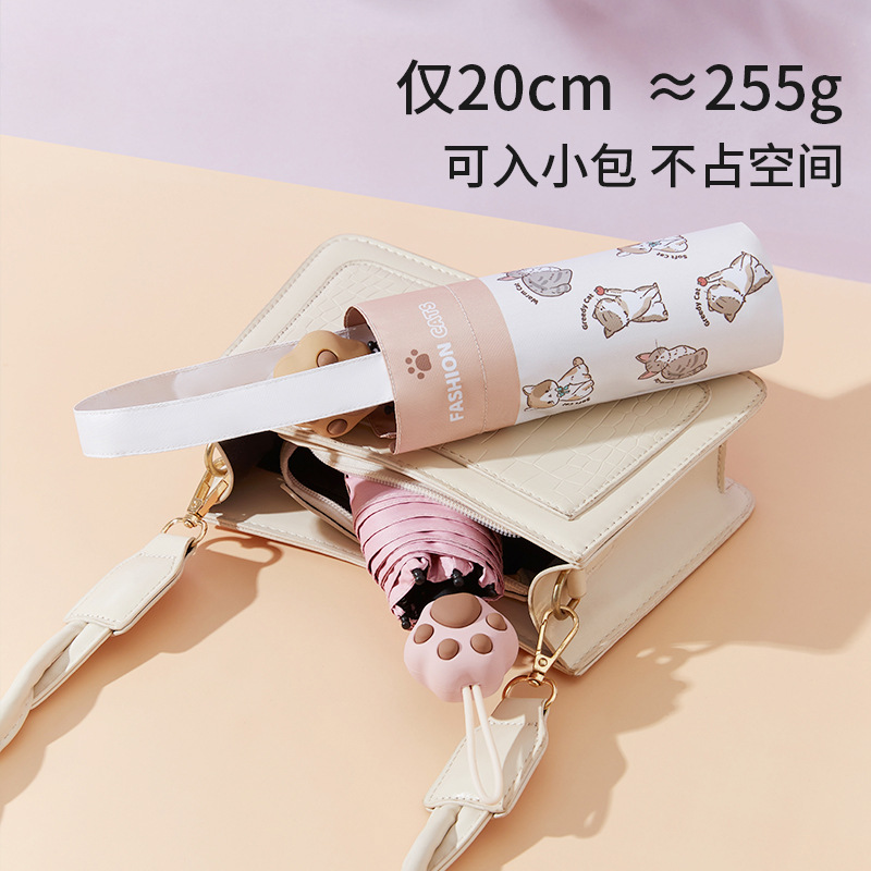 新品猫爪六骨五つ折り傘クロコダイル紫外線対策日傘折りたたみ晴れ傘両用かわいい三つ折り傘