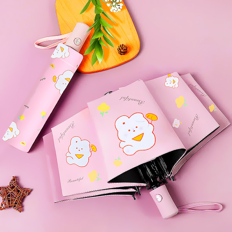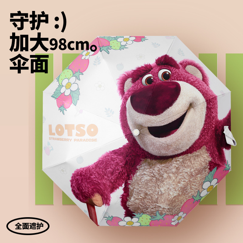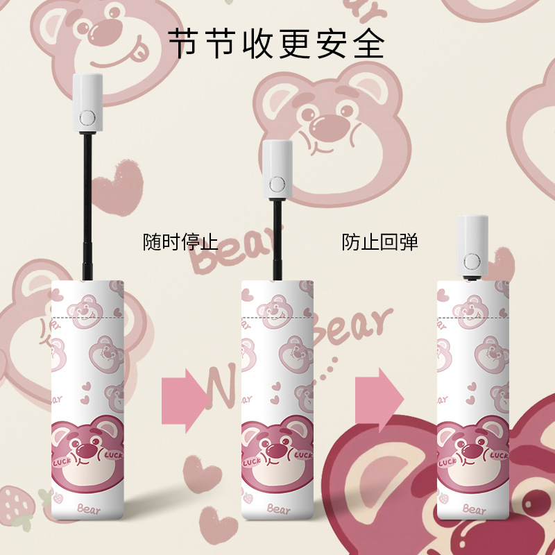 いちご熊全自動傘晴雨両用黒ゴム折り畳み日傘学生日焼け止め紫外線防止日傘