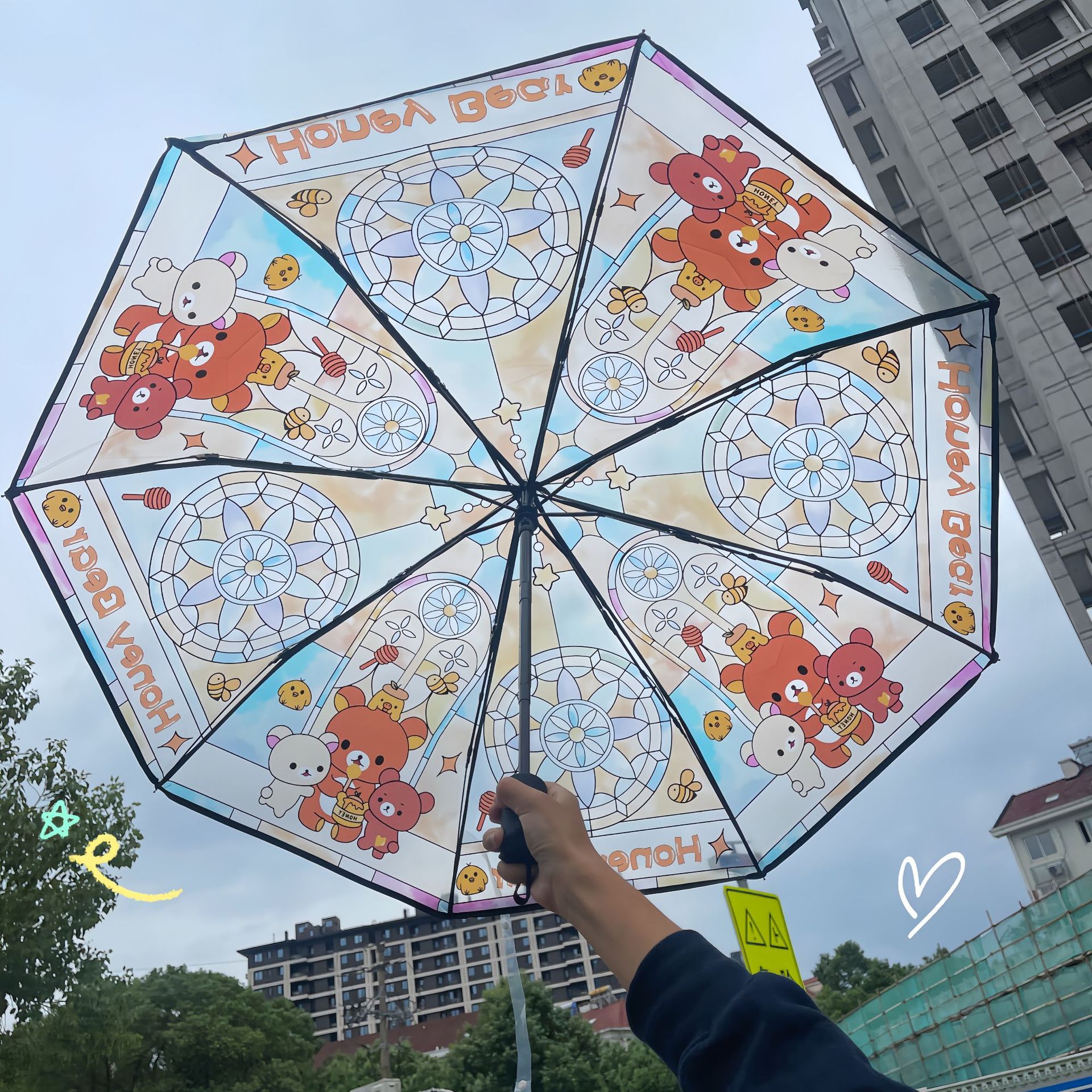 Insバター熊晴雨両用デジタルプリント半遮光日焼け止めカートゥーン傘