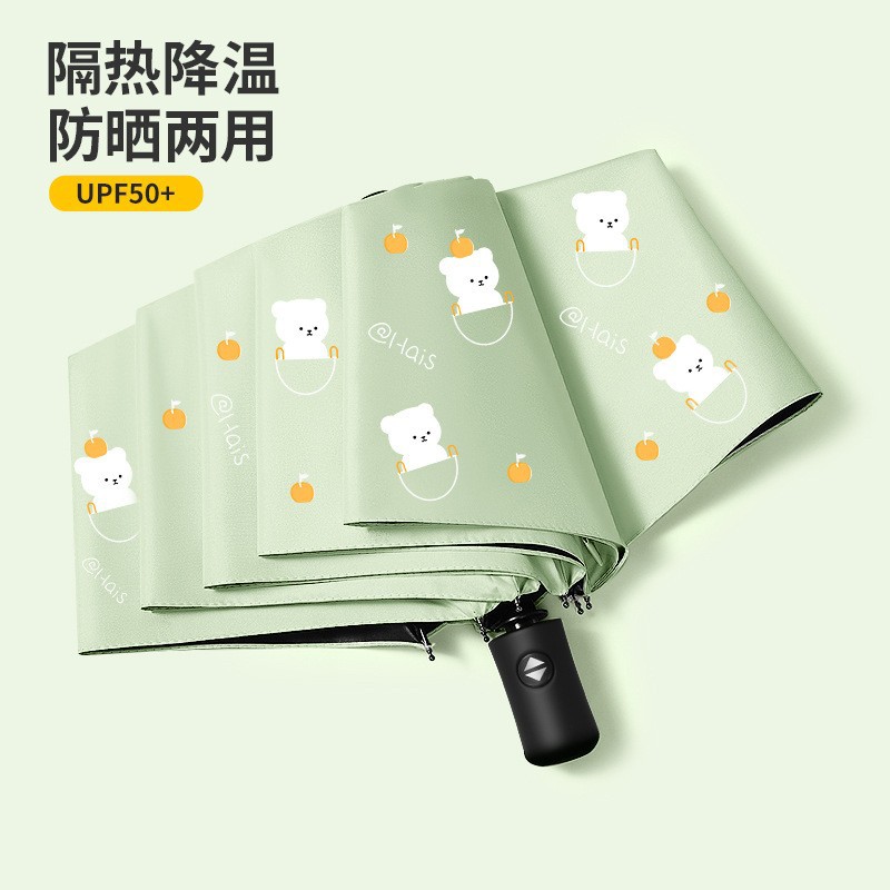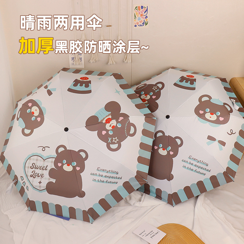 全自動高颜値クリーム熊傘折り畳み日よけ黒ゴム日焼け止め傘紫外線防止女晴雨両用