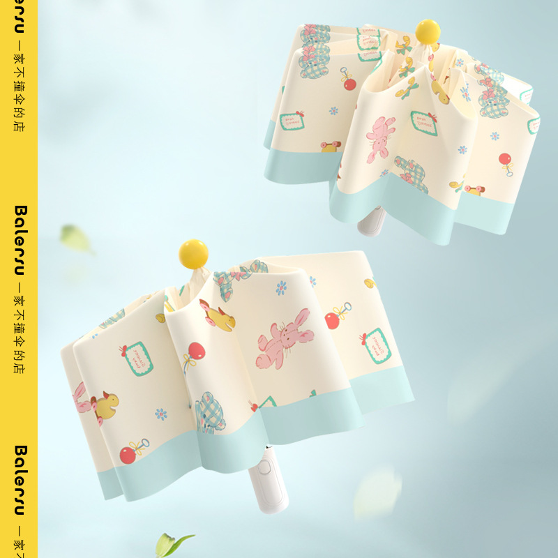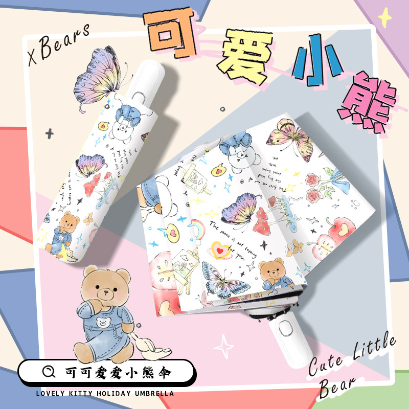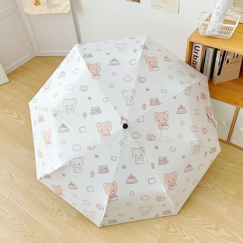 Ins漫画バター熊デジタルプリント半遮光晴雨両用傘ミニ五つ折り全自動防風