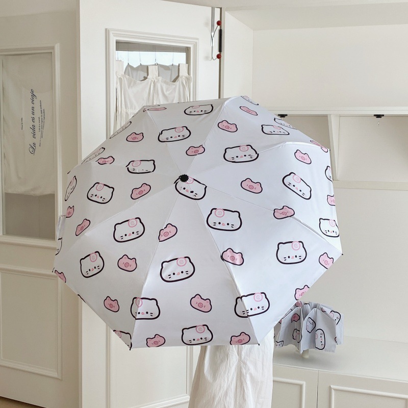 正規版サンリオケイティ晴雨傘日焼け止め黒ゴム手動三つ折り傘シリコン人形upf50抗風