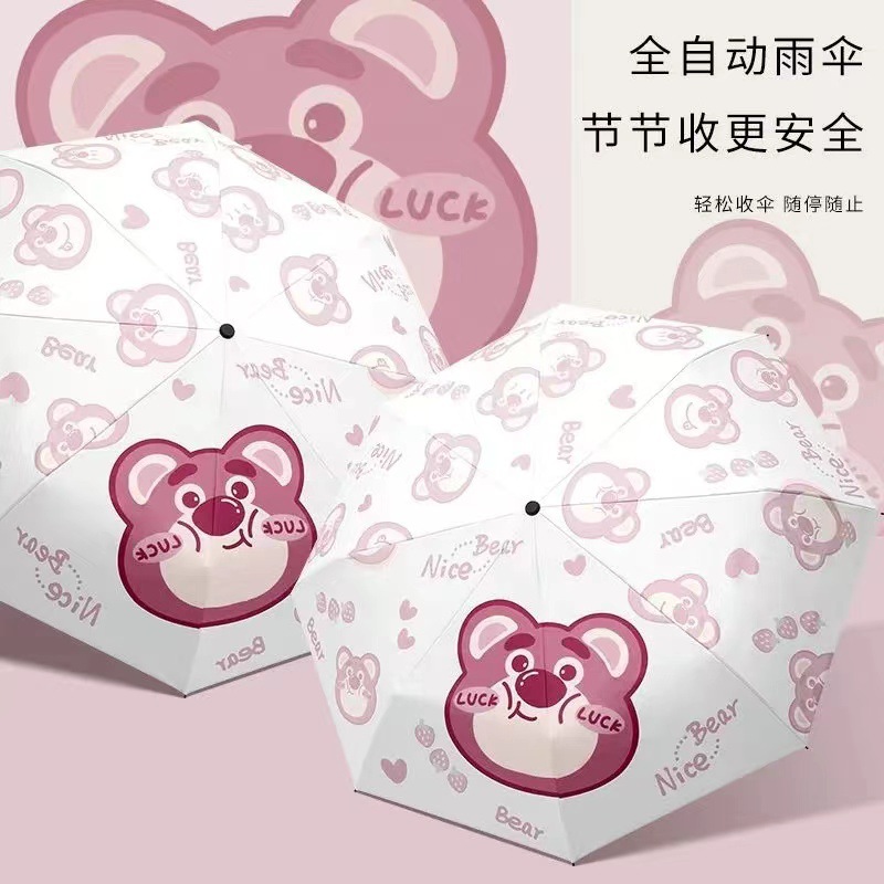かわいいイチゴクマの女性用自動傘、高見えする晴雨兼用日傘、紫外線防止漫画日傘