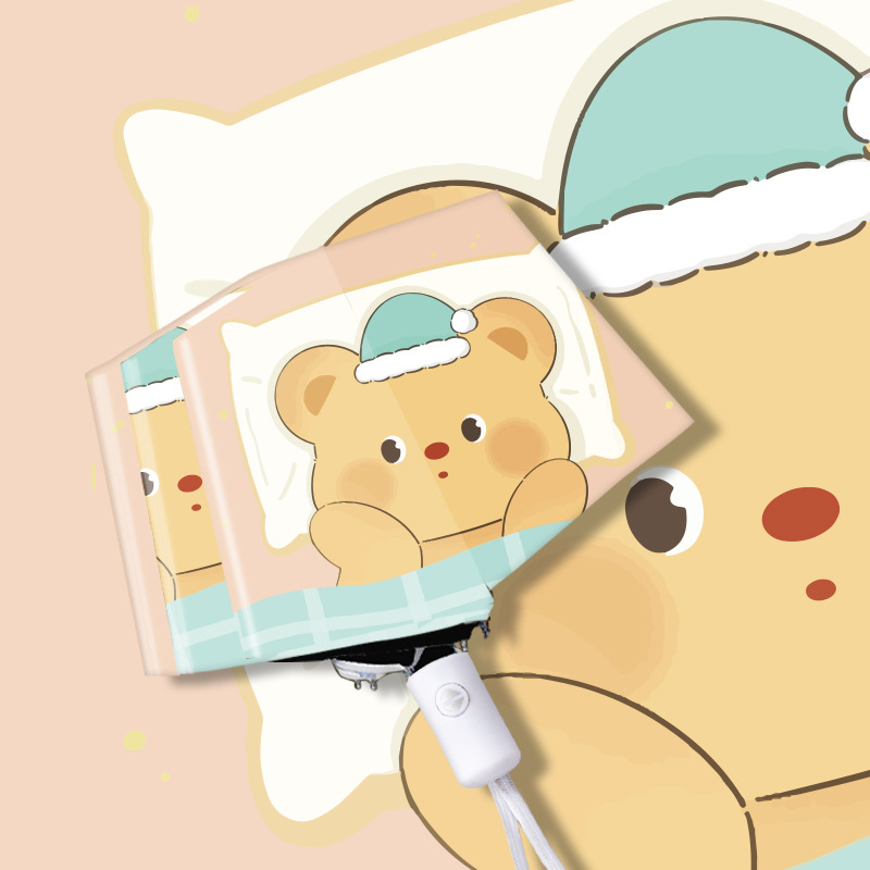 Ins熟睡熊熊かわいいアニメ三つ折りデジタルプリント半遮光晴雨両用傘かわいいアニメ